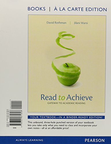 See all customer reviews...Read to Achieve: Gateway to Academic Reading, Books a la Carte Plus NEW MyReadingLab with eText -- Access Card Package, by David Rothman, PDF