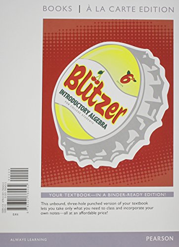 The Blitzer Algebra Series combines mathematical accuracy with an engaging, friendly, and often fun presentation for maximum appeal. Blitzer’s personality shows in his writing, as he draws readers into the material through relevant and thought-provoking applications. Every Blitzer page is interesting and relevant, ensuring that students will actually use their textbook to achieve success!